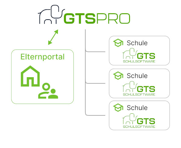 GTSPro entfaltet seine volle Stärke durch die Datenanbindung an beliebig viele GTS Systeme. So landen alle relevanten Kind-Informationen auch bei den Betreuungen der Ganztagskinder vor Ort. Es ist ebenfalls möglich, bestimmte Informationen von den GTS Systemen - wie z.B. das Umziehen eines Kindes in eine andere Klasse - an GTSPro vollautomatisch zu übertragen. So bleiben alle immer auf dem aktuellen Stand!