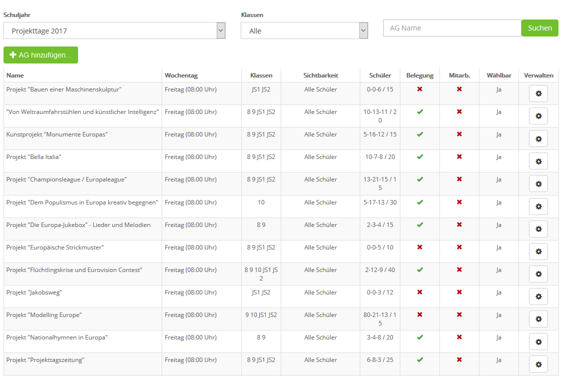 Die GTS-Verwaltungssoftware können Sie auch "zweckentfremdet" nutzen, sobald Schüler oder Eltern etwas wählen müssen, z.B. Projekttage oder Kurse